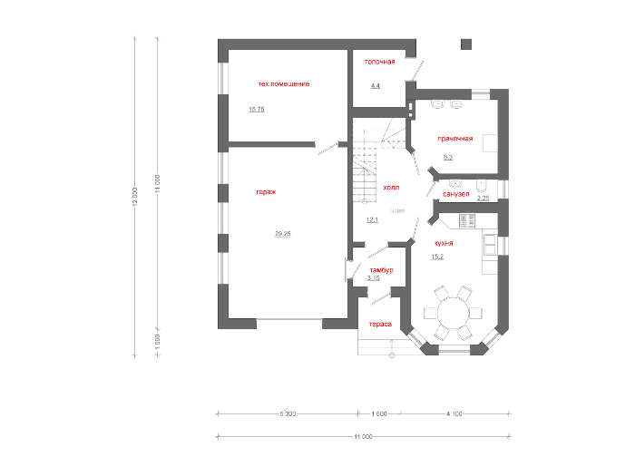 Проект содержит три раздела – Архитектурный, Конструктивный и Инженерный (Водоснабжение, Отопление, Вентиляция, Канализация, Электроснабжение) + Пояснительная записка
