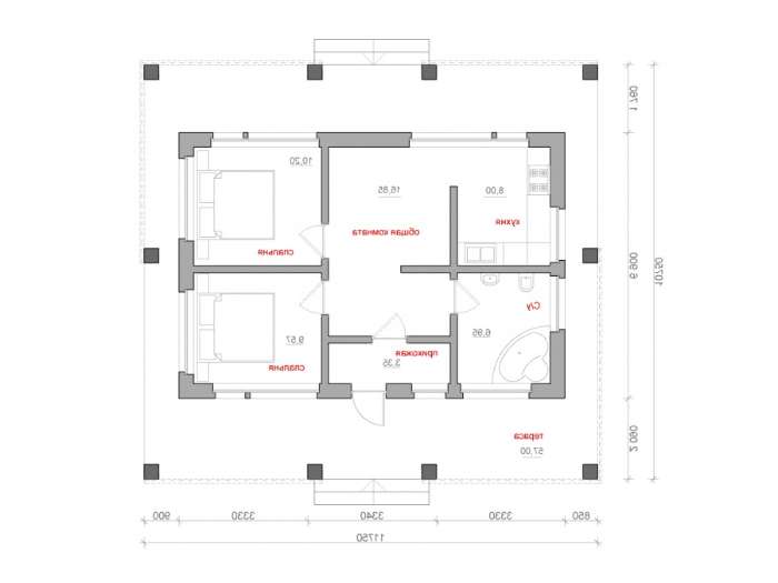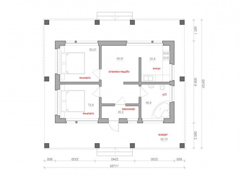 • 4M801 Проект одноэтажного современного коттеджа с 2-я спальнями