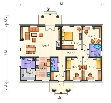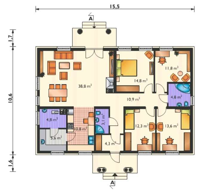 Проект одноэтажной усадьбы с колоннами на крыльце 4M3484c