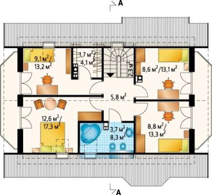 Проект привлекательного мансардного коттеджа с эркером в кухне-студио 4M3270