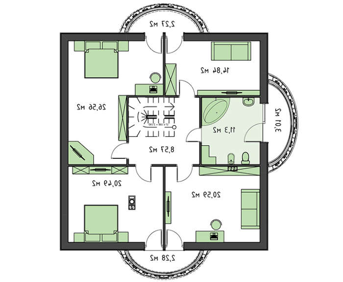 • 4M833 Проект просторного коттеджа с круглыми балконами и гаражом