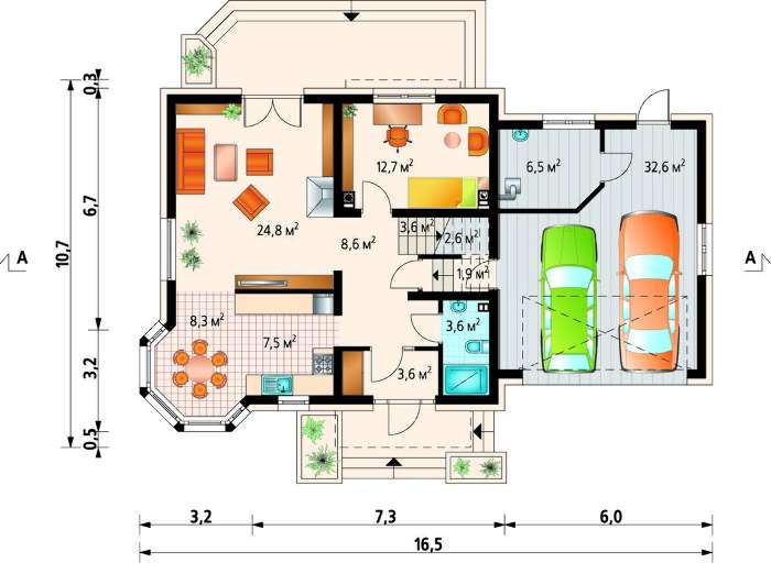 • 4M3446a Проект симпатичного дома с гаражом на две машины и эркером