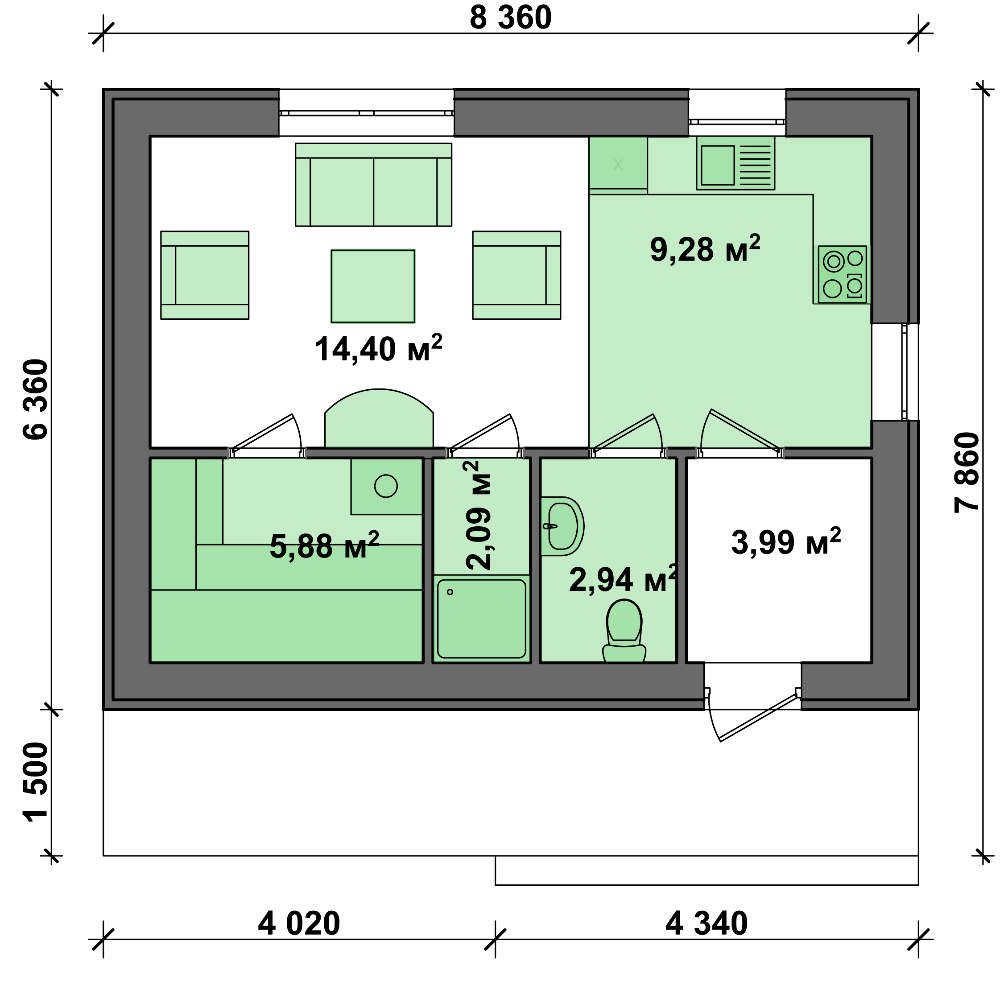 | Высота дома: | 3.65 м |