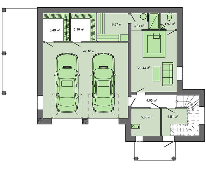 Проект стильного просторного 3-х этажного коттеджа с гаражом 4M2328