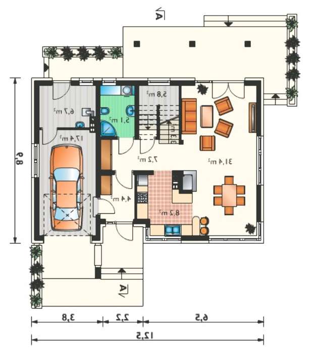 • 4M3185f Проект уютного мансардного коттеджа с верандой