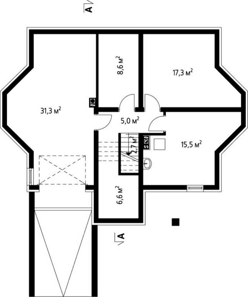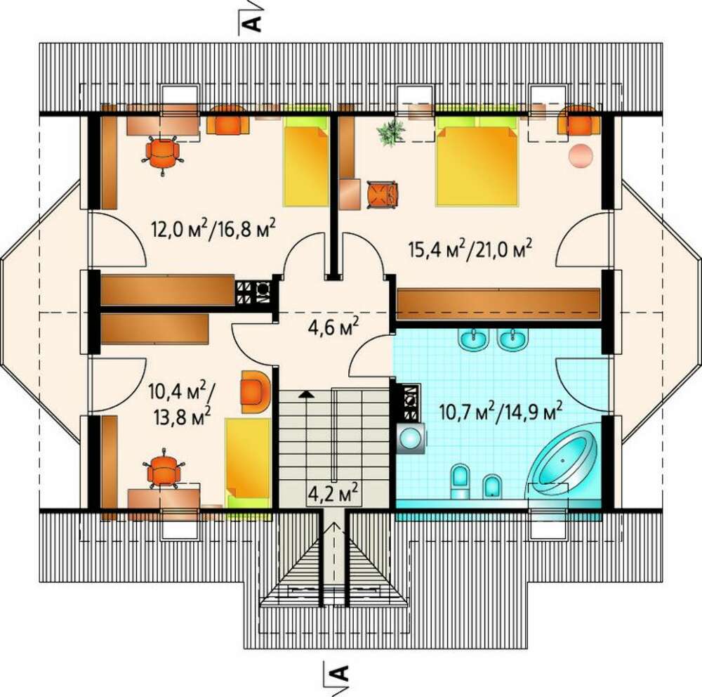 • план первого и остальных этажей – показывает размещение отдельных помещений и их размеры, площадь, размещение стен, размещение дверных и оконных проемов, кухонных и санитарных установок;