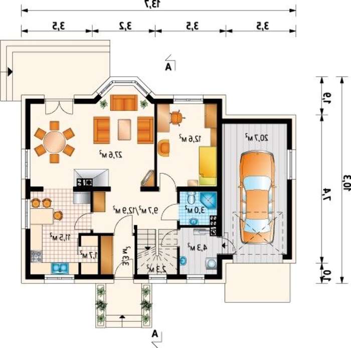• 4M3212a Симпатичный проект коттеджа с мансардой 170 m² с гаражом на 1 авто