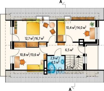 • план первого и остальных этажей – показывает размещение отдельных помещений и их размеры, площадь, размещение стен, размещение дверных и оконных проемов, кухонных и санитарных установок;
