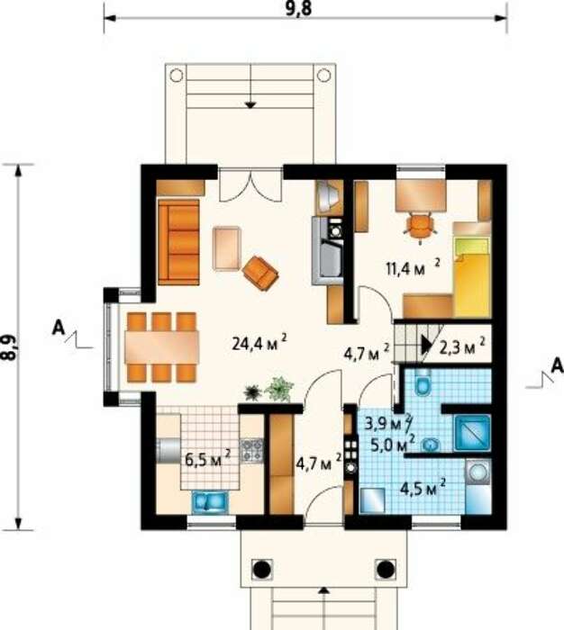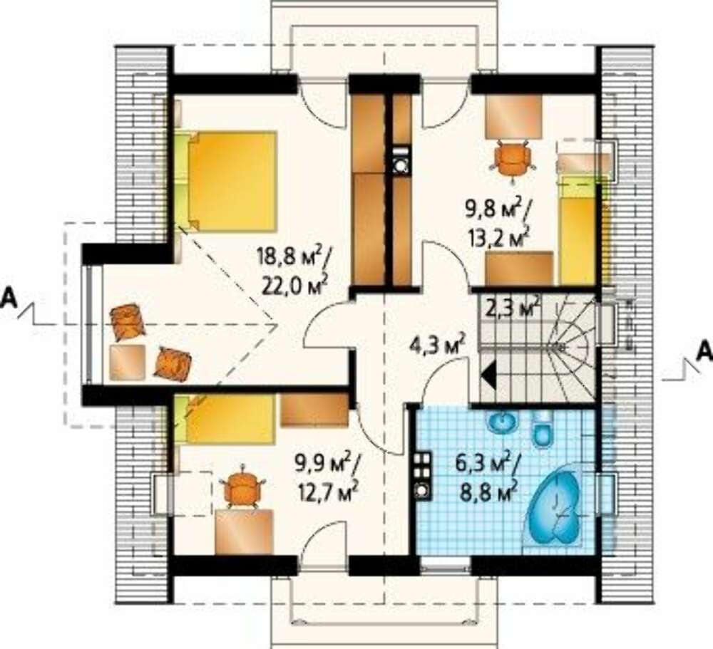 Традиционный проект небольшого коттеджа с мансардой 9 на 10