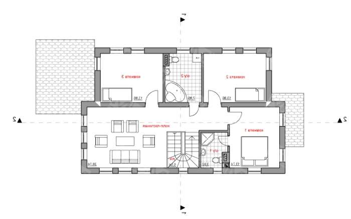 Проект содержит три раздела – Архитектурный, Конструктивный и Инженерный (Водоснабжение, Отопление, Вентиляция, Канализация, Электроснабжение) + Пояснительная записка