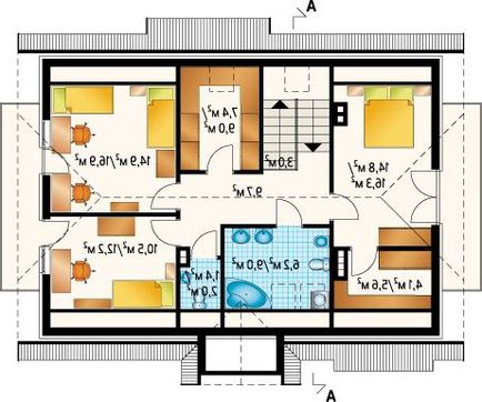 • план первого и остальных этажей – показывает размещение отдельных помещений и их размеры, площадь, размещение стен, размещение дверных и оконных проемов, кухонных и санитарных установок;