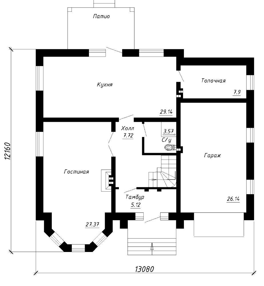 Проект содержит три раздела – Архитектурный, Конструктивный и Инженерный (Водоснабжение, Отопление, Вентиляция, Канализация, Электроснабжение) + Пояснительная записка