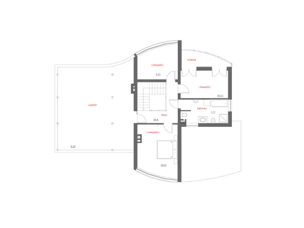 Загородный коттедж в стиле хай-тек с тремя спальнями на втором этаже и огромной террасой 4M843